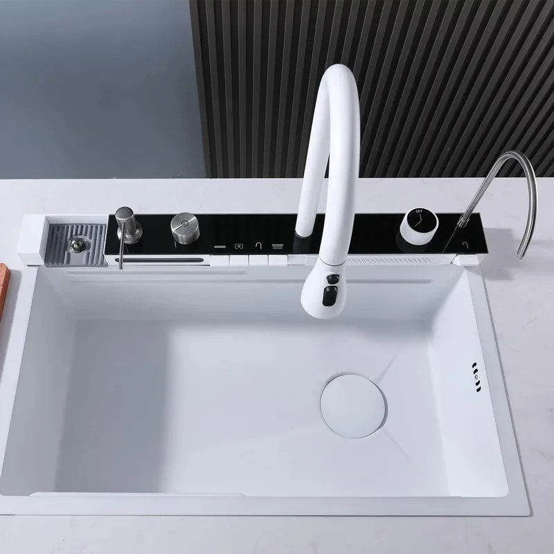 حوض مطبخ سمارت ٥ زرار و٢ شلال و شاشة - ابيض